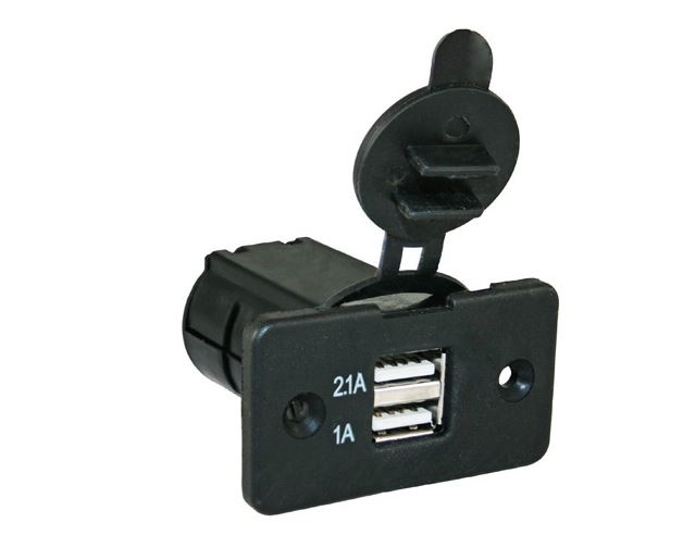 12 Volt USB lader inbouw, USB 1x 2.1A + 1x 1A. Geschikt voor Iphone, Ipod, Ipad en andere tablets.