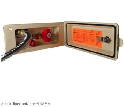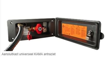 Voorzien van snelkoppeling voor gas en water. Gasaansluiting volgens DVGW 89.08 E140. Wateraansluiting voorzien van schakelaar. Inbouwmaat 157 x 67 mm. Dekselhoogte 28 mm. Met slot.