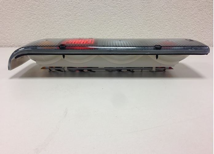 Origineel achterlicht van Britax, zowel links als rechts te gebruiken. De afmeting is ±382x130 mm. Deze achterlichten worden o.a. op sommige caravans en campers van het merk Sprite gemonteerd. Het identificatienummer op het glas is 2a R F R S1 0028. Wordt geleverd inclusief gloeilampen. Alle functies zitten gemonteerd op dit achterlicht:
