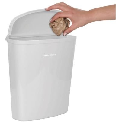 Modern vormgegeven vuilnisbak met deksel. Erg handig voor het kleine afval in carvan, camper of op de boot. De deksel sluit volledig om vieze geuren en morsen te voorkomen. Volledig van sterk kunststof. Makkelijk op te bouwen: 1. Met dubbelzijdig tape 2. Door op de wand te schroeven. Makkelijk afneembaar voor reiniging of legen.