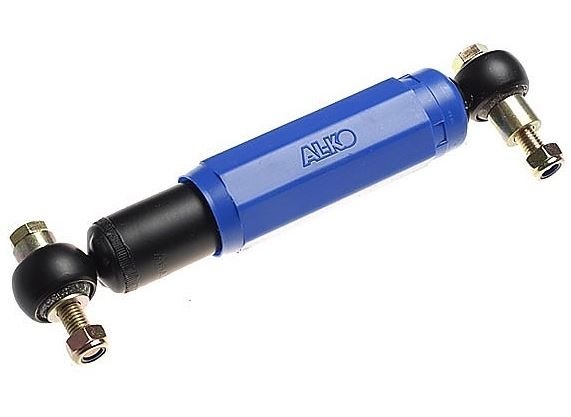 Originele asschokbreker van AL-KO. De uitgeschoven lengte is 380 mm, en ingedrukt is de lengte 260 mm. Het vermogen is 1300 kg (enkelas) tot 2600 kg (tandemas).