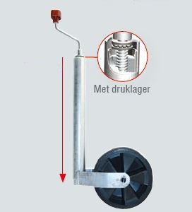 Statisch vermogen is 150 kg, en het dynamisch vermogen is 90 kg. Dit neuswiel wordt veel gebruikt bij caravans, maar is ook prima te gebruiken voor uw aanhangwagen, paardentrailer, boottrailer of vouwwagen. Door het grote wiel is het beter begaanbaar over oneven terrein.