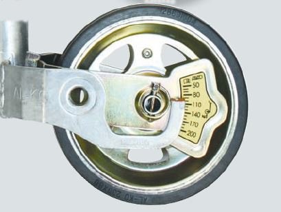 Originele neuswiel met kogeldrukmeter van AL-KO. Door deze geïntegreerde kogeldrukmeter kunt u in een oogopslag zien met wat voor gewicht uw caravan op dat moment op uw kogel drukt. Het wieltje heeft een afmeting van 230x80 mm is is van staal met een massief rubberen band. Het statisch draagvermogen is 300 kg.