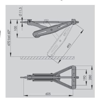 Originele uitdraaisteun van AL-KO, de lengte is 605 mm en de breedte is 190 mm. Maximaal statisch draagvermogen is 1000 kg. Deze uitdraaisteun is toepasbaar op bijna alle caravantypes, en kan eventueel ook onder een aanhangwagen gemonteerd worden.
