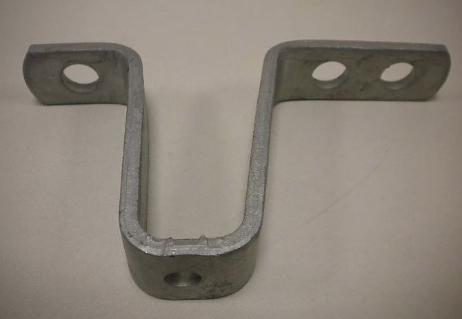 Valbeugel van AL-KO, de hoogte is 85 mm. De afstand van het voorste boutgat naar de 2 achterste boutgaten is 90/116 mm.