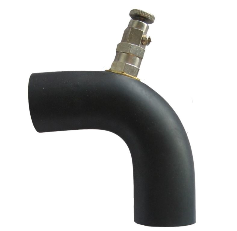 Rubberen verbindingsbocht met zijontluchting voor het verbinden van de aluminium buizen en radiatoren in het Alde ringleidingssysteem.