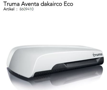 Truma, de veelvuldig onderscheiden aircospecialist op het gebied van caravaning, breidt haar modelassortiment uit met een dakairconditioner: Aventa comfort - maar liefst twee toestellen in één. Deze sterke dakairconditioner biedt naast de krachtige koelfunctie tevens de mogelijkheid tot verwarmen dankzij de energiebesparende warmtepomp. Hierdoor heersen er zowel op hete zomerdagen als in koele nachten in voor- en najaar prettige temperaturen in het voertuig. Functies: Koelen 3 ventilatorstanden plus sleep-functie; Verwarmen: 2 ventilatorstanden; Automatisch: automatische regeling van de ventilatorstanden (afhankelijk van ingestelde ruimtetemperatuur, koel- of verwarmingsbedrijf); Circulatielucht: 3 ventilatorstanden. Letop; Levering is exclusief luchtverdeler/binnendeel. Art.nummer: 8609480-Luchtverdeler grijs Art.nummer: 8609470-Luchtverdeler creme.
