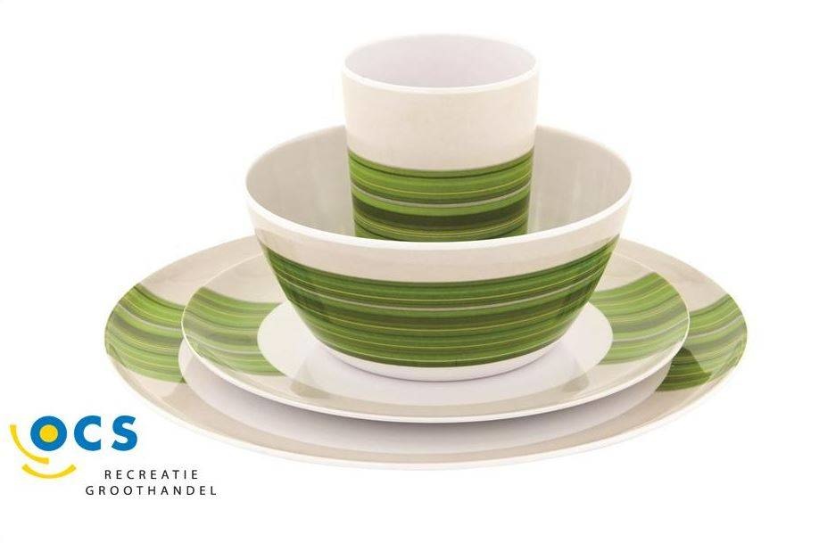 Het servies bestaande uit borden, kommen en bekers is gemaakt van puur, vrijwel onbreekbaar melamine en zal daardoor jaren meegaan. Kenmerken: 2 borden: 25 cm (Dia.). 2 dessertborden: 19.5 cm (Dia.). 2 mokken: 10 x 7.5 cm (HxDia.). 2 kommen: 6.5 x 14.5 cm (HxDia.). Kan in de afwasmachine. Niet gebruiken in de magnetron. Technische specificaties: Materiaal: 100% melamine.