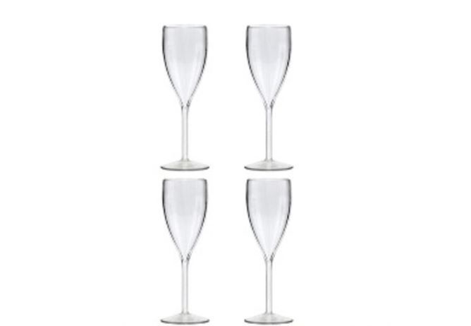 * Kunstof champagneglazen sterk en hittebestendig.* Lijkt op echt transparant glas. Inhoud 13cl.