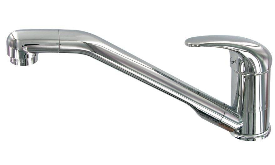 Chrome kraan met schakelaar. 1 "schroefdraad en een uitloop. Bestand tegen max. 3 bar waterdruk.