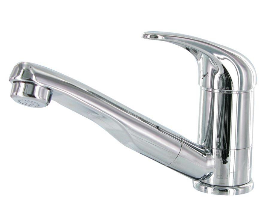 Chrome kraan met schakelaar. 1 "schroefdraad en een uitloop. Bestand tegen max. 3 bar waterdruk.