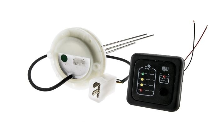 12V controlepaneel voor het niveau van de schoonwater tank en voor de signalering van een volle vuilwater tank.