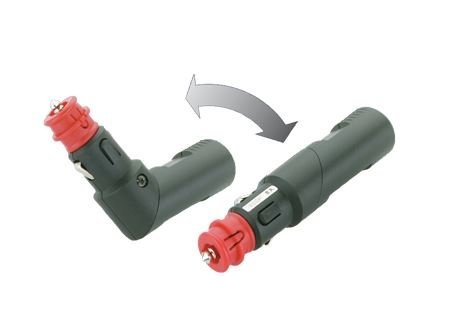 12V stekker universeel met zekering 8A, haaks verstelbaar.