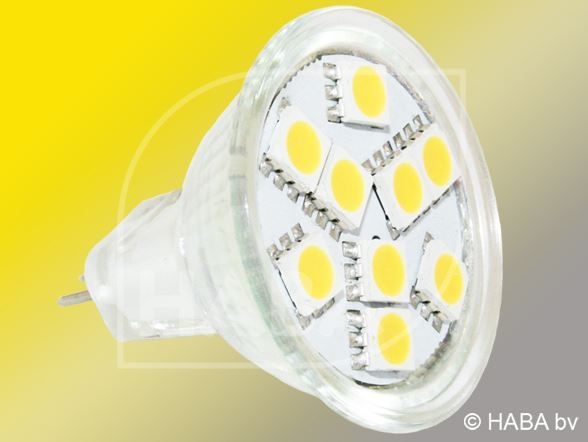 lichtopbrengst vergelijkbaar met 8W halogeen 9 SMD Led warm white, 80 lumen, 1.3W, 20000h 35x35mm met stabilisator, niet dimbaar