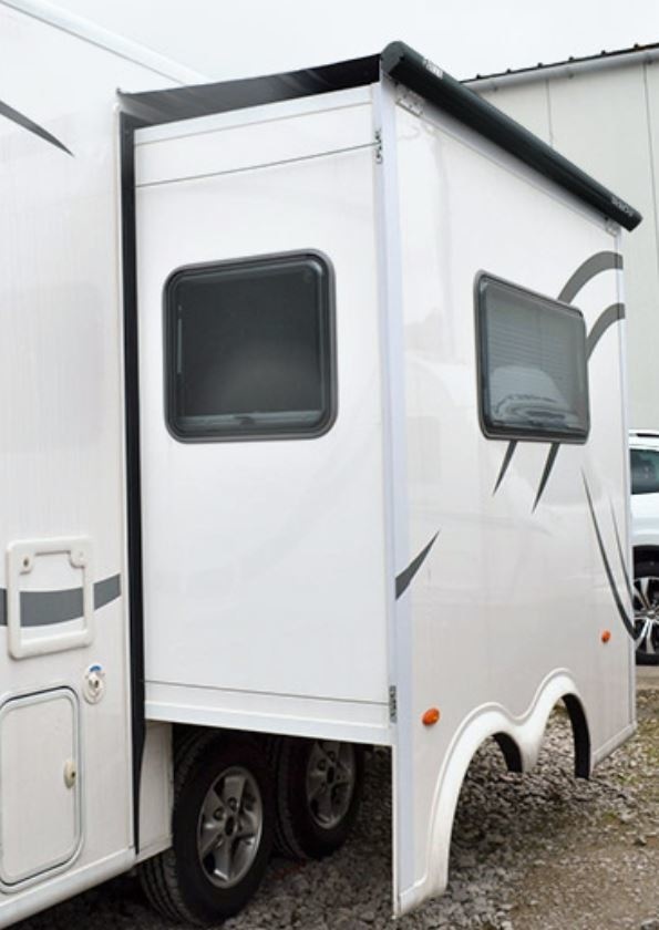 De Luifel word standaard geleverd met installatie beugels, niet voorzien van steunpoten en draagarmen, exclusief ontworpen voor Pop Out Walls