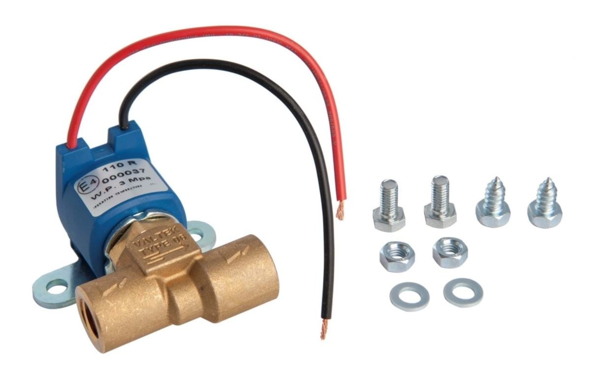 Elektrische gasafsluiter. Verkrijgbaar in 12 volt en 24 volt. Aansluiting 1/4” binnendraad x 1/4” binnendraad. Te plaatsen tussen de gasleiding. 3 MPA - 30 bar.