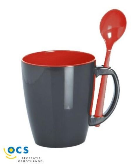 Gimex Greyline Red 4 delige set, met 4 bekers met lepel 35 cl., gewicht: 630 gram.