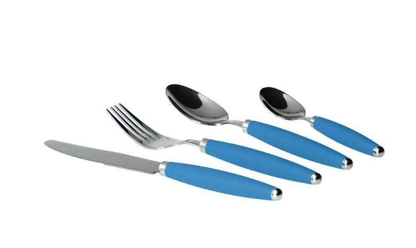 Gimex Greyline Türkis edelstaal 6 delig bestekset. 4 x messen, 4 x vorken, 4 x lepel, 4 x theelepel. Materiaal: ABS soft touch finish, roestvrijstaal 18/0. Gewicht 700 gram.