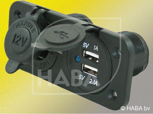 1x 1A + 1x 2.1A USB lader (geschikt voor het opladen van tablets zoals iPad, Samsung Galaxy, etc) 1x 12V contactdoos inbouw