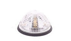 Rond breedtelicht met metalen onderplaat en helder glas. Merk Hella.