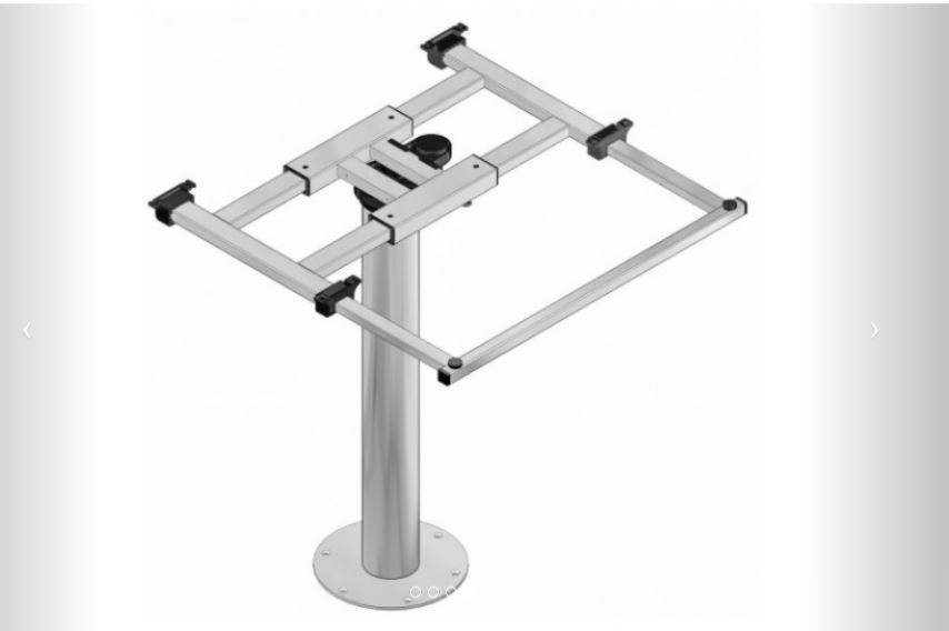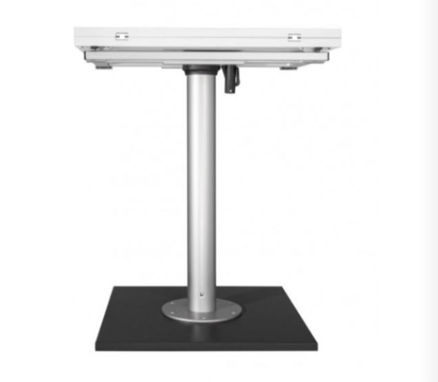 Vaste tafelkolom met verplaatsing, 360 ° rotatie en schuifverlenging om de tafelbladgrootte te verdubbelen. Hoogte tot onderkant tafelblad 700 mm. Lengteverschuiving 30 cm. Schuifverlengstuk 21,5 cm. Tafelblad en montageplaat zijn niet bij de levering inbegrepen.