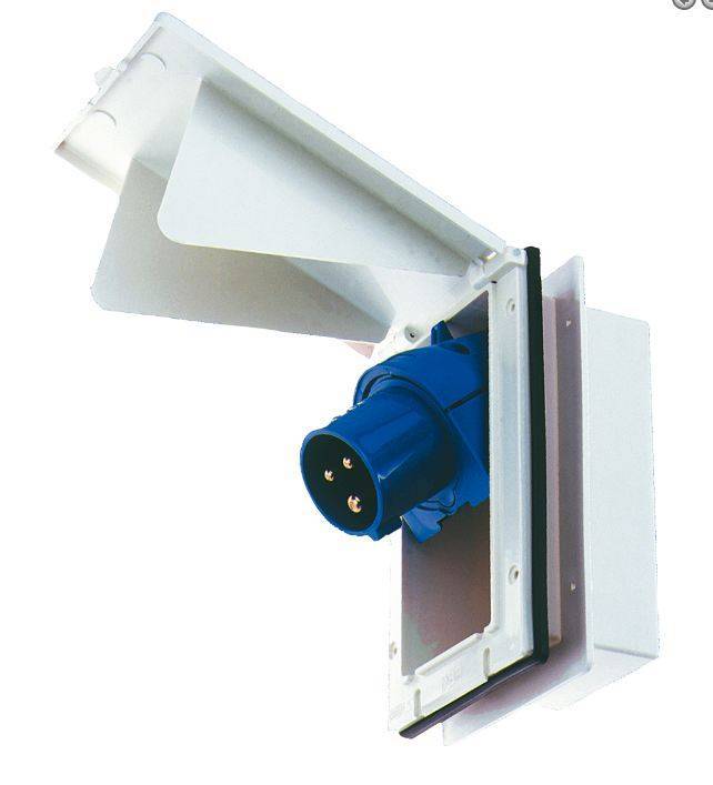 Inbouwstekkerdoos CEE langwerpigInbouwdoos voorzien van :230V CEE.Klepdeksel. Inbouwmaat : 70x135x65mm.Kunststof uitvoering.