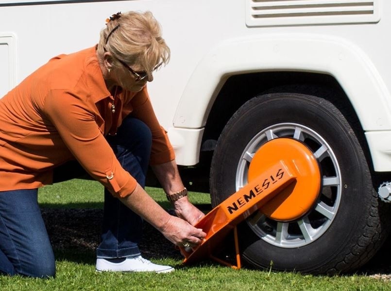 De Nemesis wielklem, die als immobilisatiesysteem aan het wiel is bevestigd, biedt optimale bescherming tegen diefstal van caravans, campers en andere voertuigen. De wielklem past op 10″-20″ wielen met een bandbreedte tussen 145-245 mm. Deze wielklem maakt het onmogelijk om met het voertuig waaraan deze bevestigd is, weg te rijden of te duwen. De veiligheidsbout zorgt voor een zeer hoog veiligheidsniveau.