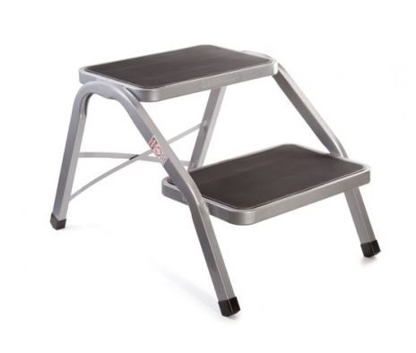 De opstap is licht van gewicht en heeft antislip doppen onder de poten. Op het draagvlak van beide treden is een rubberen antislipmat bevestigd voor extra grip.