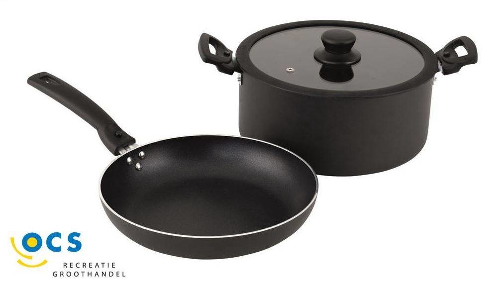 De Outwell Culinary Set L is gloednieuw voor 2017 en heeft een grote pot van 5 liter met dubbele afneembare, zachte handgrepen en een ondiepe pan van 24 cm met een stevige, afneembare, zachte handgreep die ook dienstdoet als deksel tijdens het koken en voor de bewaring wordt er een bandje voorzien. Het gebruik van staal en niet-klevend aluminium met coating zorgt voor duurzaam en doeltreffend kookgerei dat gedurende vele jaren betrouwbaar kan worden gebruikt. Kenmerken:1 kookpan (5L), 1 koekenpan (dia. 24 cm), 1 afneembaar handvat voor de koekenpan. Glazen en siliconen deksel past op pot en koekenpan. Deksel met stoomuitlaat. Klein te verpakken, ideaal voor opslag en transport. Draagband inbegrepen. Technische specificaties: Afm. (opgevouwen): 24.5 x 30 x 16 cm (WxDxH). Materiaal: Aluminium met non-stick coating.
