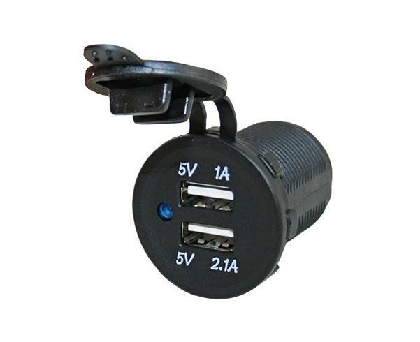 USB lader 1x1A + 1x2.1A, inclusief moer en afdekkapje