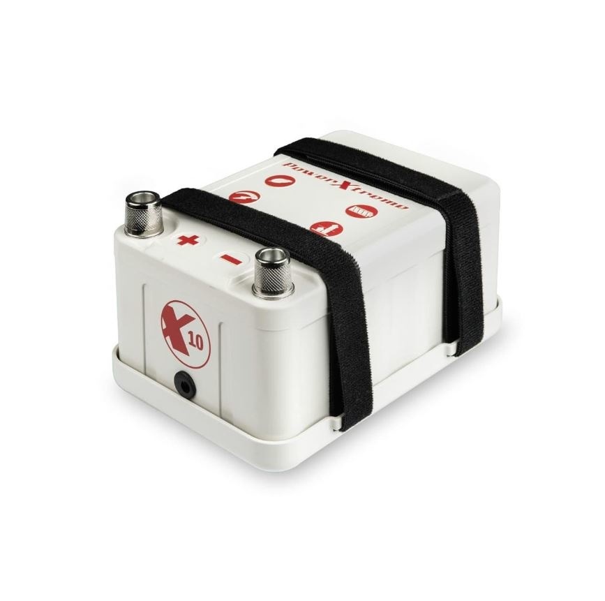Een kleine krachtpatser die slechts 2100 gram weegt en uw mover gemakkelijk tot 30 minuten kan voeden. We raden het gebruik van de X10 aan voor caravans met een totaalgewicht van 1500 kg. De X10 is bestand tegen stromen tot 150A en doet op geen enkele manier onder voor de grotere en zwaardere accu’s, maar biedt aanzienlijke voordelen.