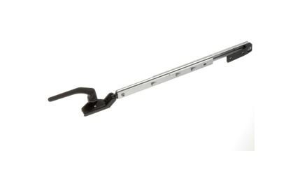 Uitzetter kliksysteem, zowel linkse als rechtse uitvoering in metaal. Gezien van de binnenkant caravan. Serie 300. Gatafstand 20mm.