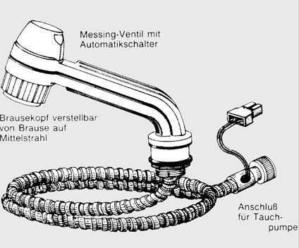 Deze uitvoering (Carletta Duschomat) is voorzien van een doucheslang met een douchekop waar men de straal kan veranderen, tevens is er een mengventiel boven op de douche kop gemonteerd, door middel van de elektrische schakeldraad kan men ook de waterpomp nu aansturen
