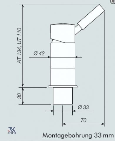 Een designarmatuur die op het werkblad wordt gemonteerd, met een douche aansluiting van 3/8“ die zich boven het werkblad bevindt.