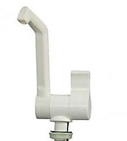 Eenhandskraan met draai- en zwenkbare uitloop en microschakelaar. Kunststof uitvoering. 12volt. Voorzien van keramisch binnenwerk. Voor slangaansluiting 10mm. Doorvoergat 26mm (koud) 26mm (meng). Inbouw hoogte 38mm. Geschikt tot 3bar.