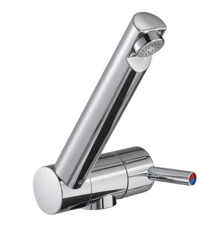Met een neerklapbare uitloop. Deze elegante en moderne kraan is met een inbouwhoogte van 40 mm uitstekend geschikt voor inbouw in een wasbak. Bladdoorvoer 30 mm.