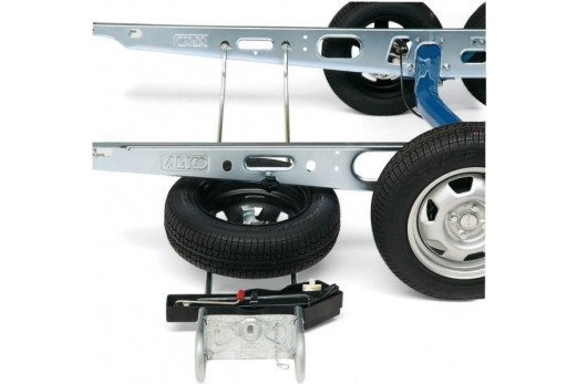 Alle caravans vanaf 1985 met een AL-KO chassis zijn standaard voorzien van montagegaten voor de reservewielhouder. Om de houder te gebruiken eerst de borgketting losmaken en vervolgens stergreep openen en verwijderen. Reservewielhouder met beide handen vastpakken en zover uittrekken dat het reservewiel goed bereikbaar is. Bij een te geringe grondspeling aanhanger eerst met krik omhoog brengen.