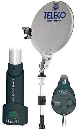 De MotoSat is een halfautomatisch satellietantennesysteem met een elektrische motor van 12 Volt waardoor het omhoog en omlaag doen van de antenne veel makkelijker gaat en waardoor het richten op de satelliet ook sneller is. Het hele elektronische mechanisme is ingebouwd in een ergonomische draaiknop die voorzien is van 2 drukknoppen waarmee de antenne naar keuze omhoog en omlaag kan worden gericht. In de knop is bovendien een tweecijferig display ingebouwd waarmee de onmiddellijke hoek van de schotel te zien is. De MotoSat is voorzien van een besturingsmicroschakelaar die de laatste hoek van de schotel in het geheugen op kan slaan waardoor elke handeling om de antenne te richten uiterst eenvoudig wordt.