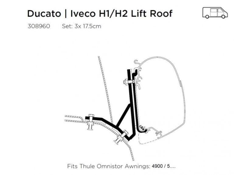 Deze Thule Omnistor adapter is geschikt voor de Fiat Ducato lift roof en busjes van Iveco.