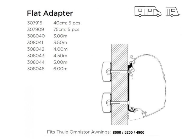 Deze universele adapter is geschikt voor diverse voertuigen. Hij kan gebruikt worden om serie 5 Thule Omnistor luifels van 6 meter te monteren. Het systeem is eenvoudig en gebruiksvriendelijk