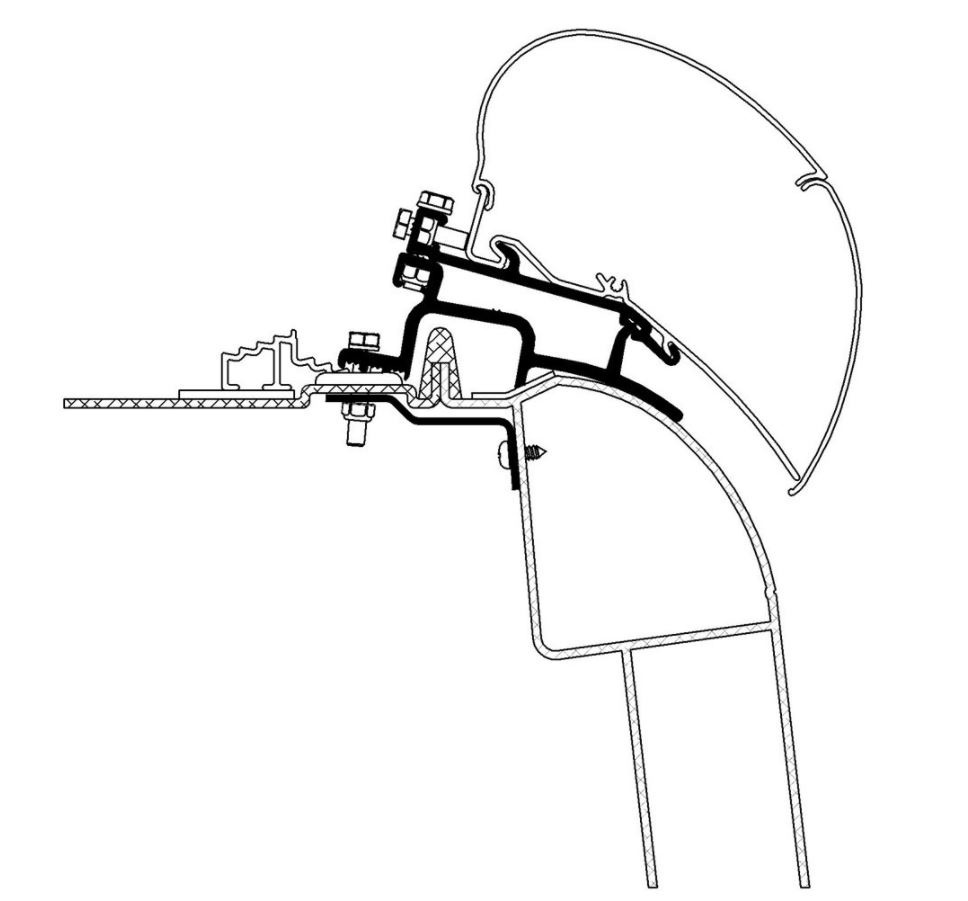 Op maat gemaakte adapterkit om een Thule luifel te monteren op specifieke voertuigen.