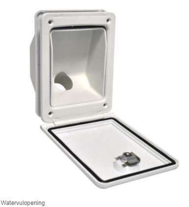 Met geintegreerde trechter, kunststof wit, voor vulslang doorsnede 40 mm. Afsluitbaar.