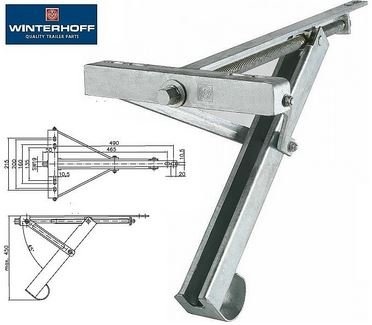 Originele uitdraaisteun van Winterhoff type ADS 460 V, ideaal voor ondersteuning van zware aanhangwagens of caravans. De lengte is 450 mm en de statische kracht is 450 kg.