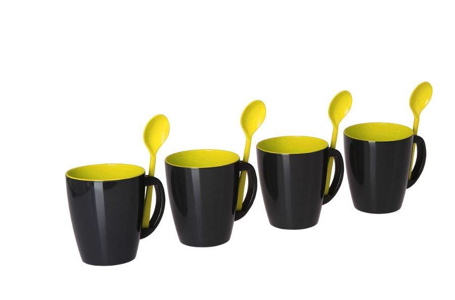Gimex Greyline Yellow 4 delige set, met 4 bekers met lepel 35 cl., gewicht: 630 gram.