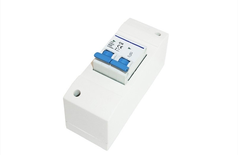 zekeringkast 2-module met dubbelpolige zekeringautomaat 10A